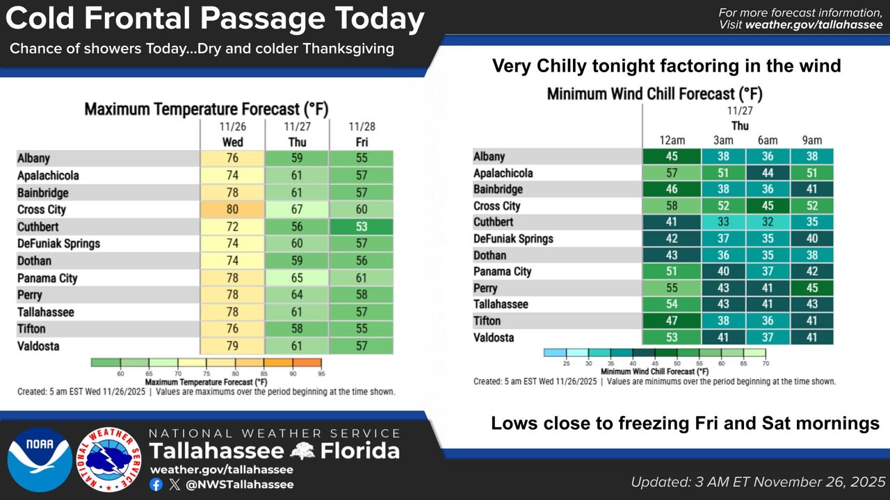 11/26 7AM ET Turning much cooler for Thanksgiving with dry weather expected. Chilly mornings Thu through Sat, particularly when factoring in the wind